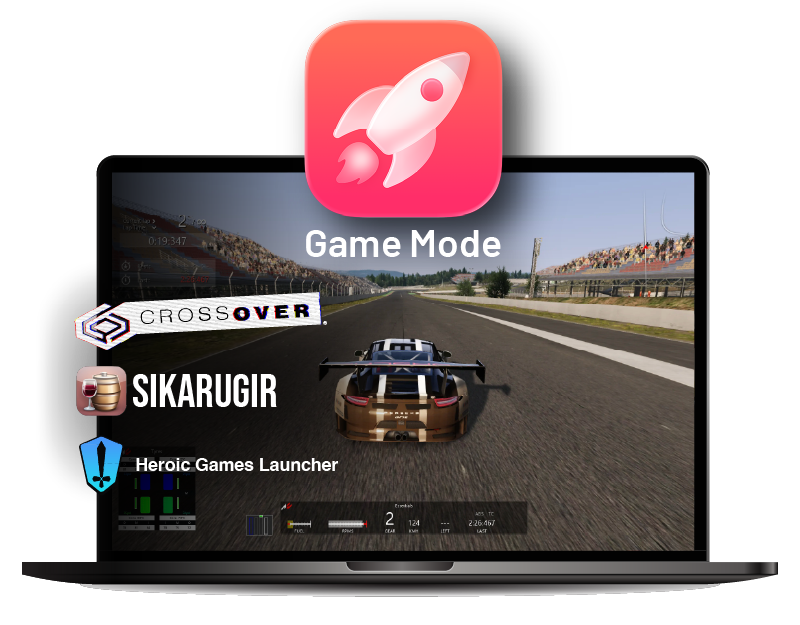 If you play Windows racing games through CrossOver, Sikarugir or Wine, do not assume Game Mode is active. If you do not see the macOS game icon, or if AirPods latency feels bad, force Game Mode on before launching the game: